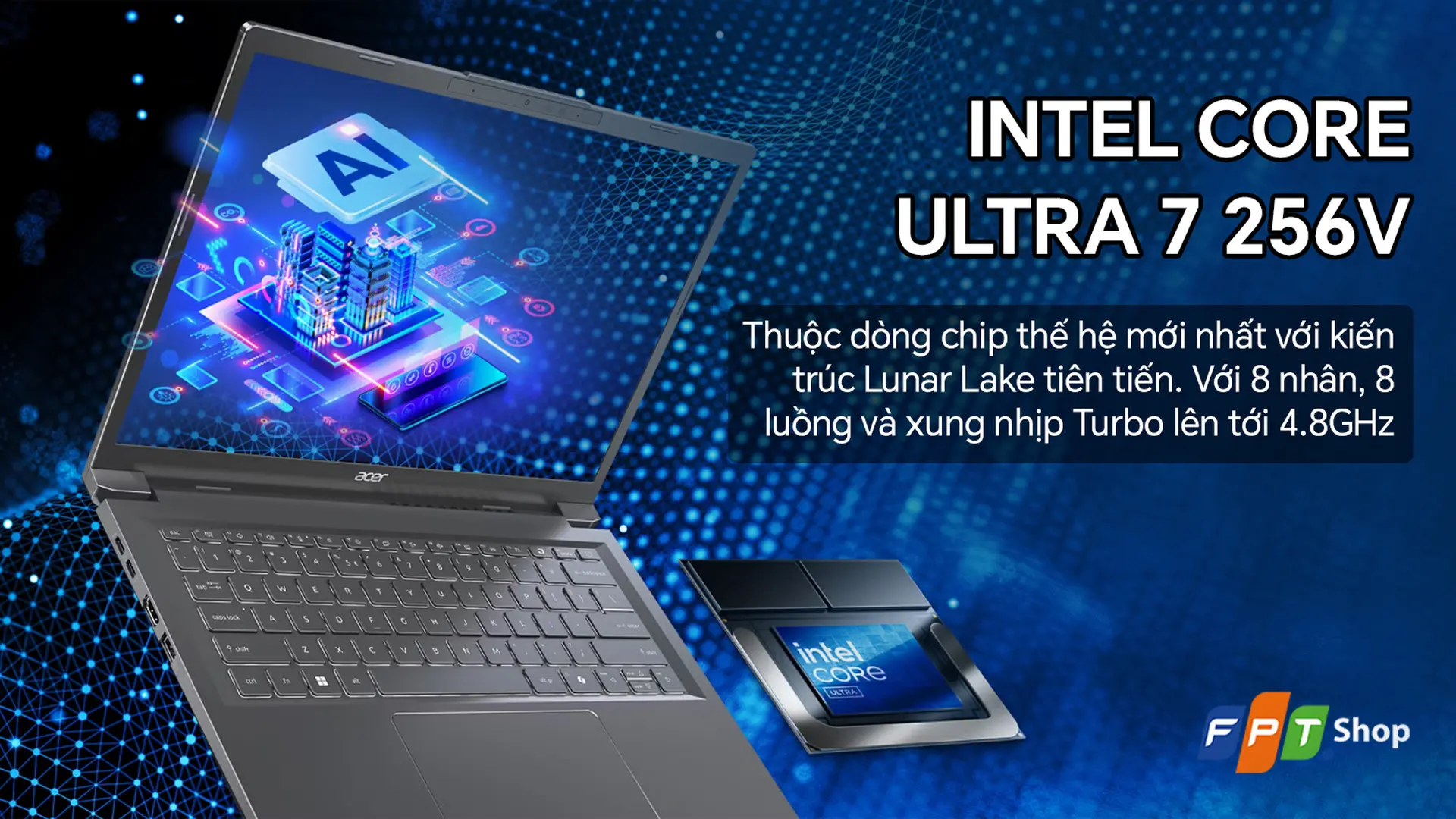 Mua laptop Acer Aspire 14 AI A14-52M-71YQ (NX.J8LSV.002) cấu hình ấn tượng với chip Ultra 7 256V, RAM LPDDR5x tốc độ cao và ổ cứng SSD 1TB và thời lượng pin lâu