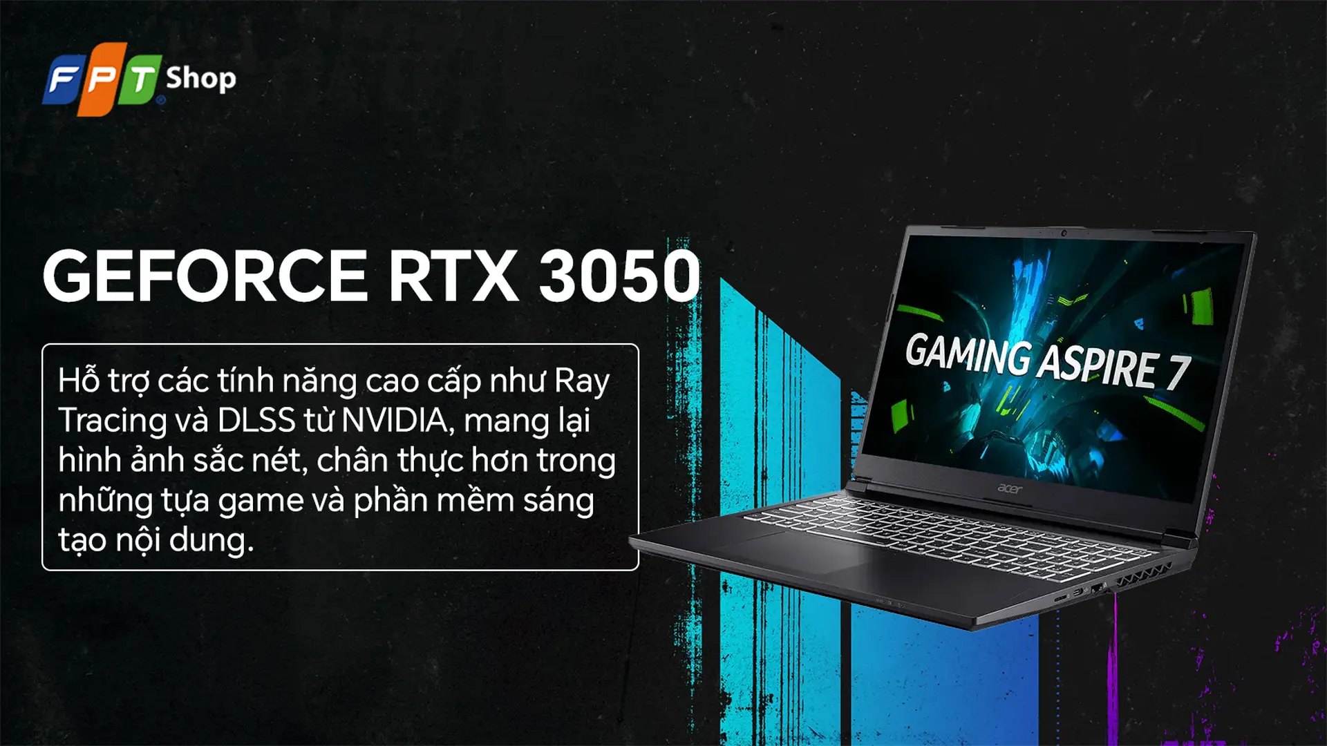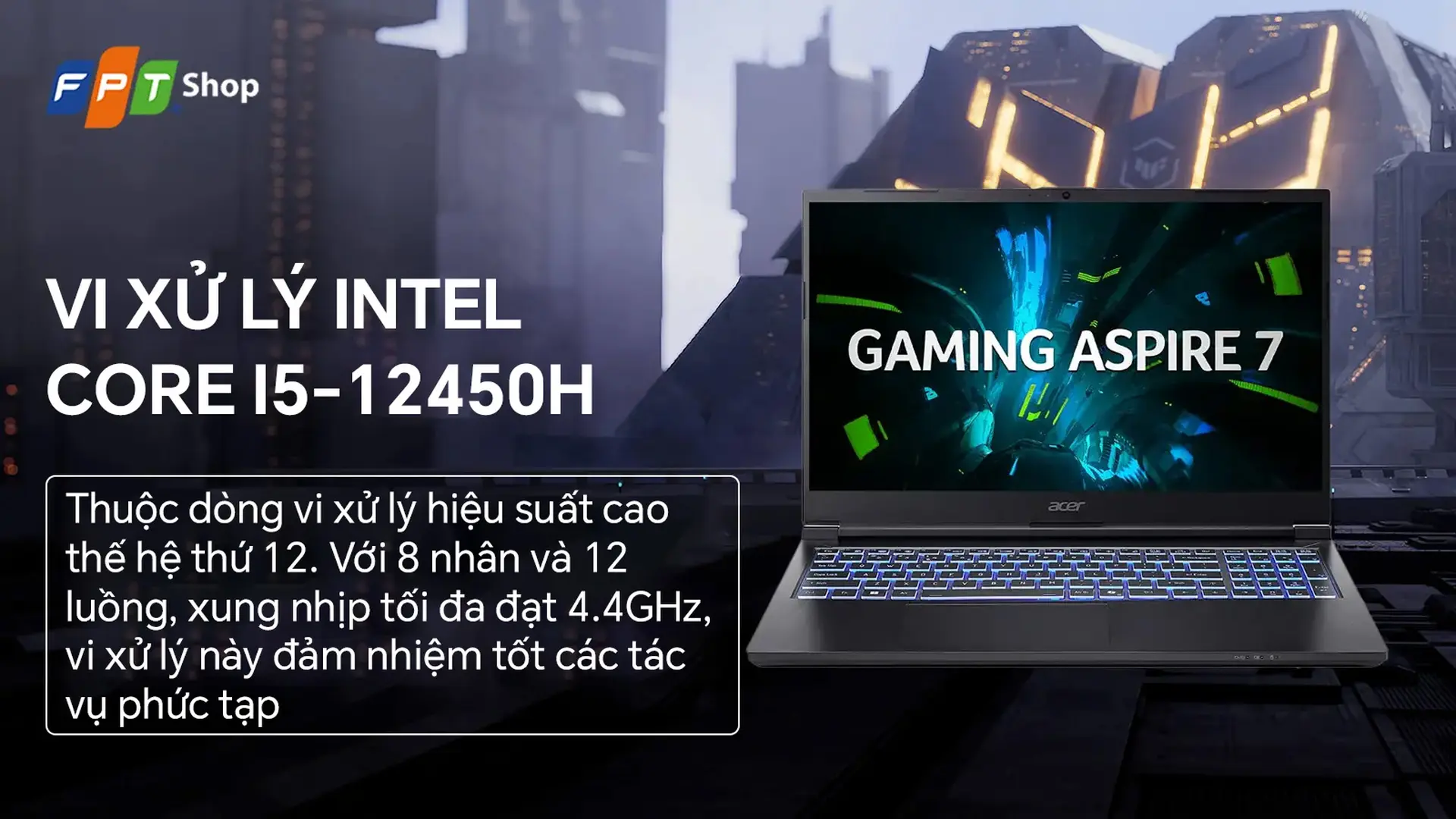 Laptop Acer Aspire 7 Gaming A715-59G-57TU chip Intel Core i5-12450H, card RTX 3050 6GB và màn hình 144Hz cho trải nghiệm mượt mà. Đặt mua ngay tại FPT Shop!
