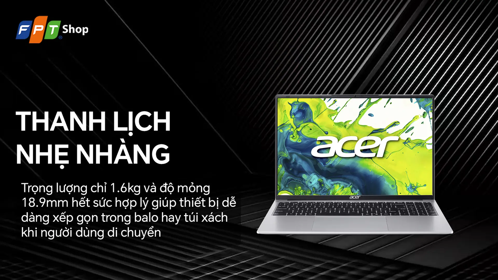 Laptop Acer Aspire Lite 16 AI AL16-71P-5674 thiết kế tối giản, màn hình 16" tỉ lệ 16:10, hiệu suất cao và tiết kiệm điện. Giá ưu đãi, trả góp từ 0 đồng tại FPT Shop!