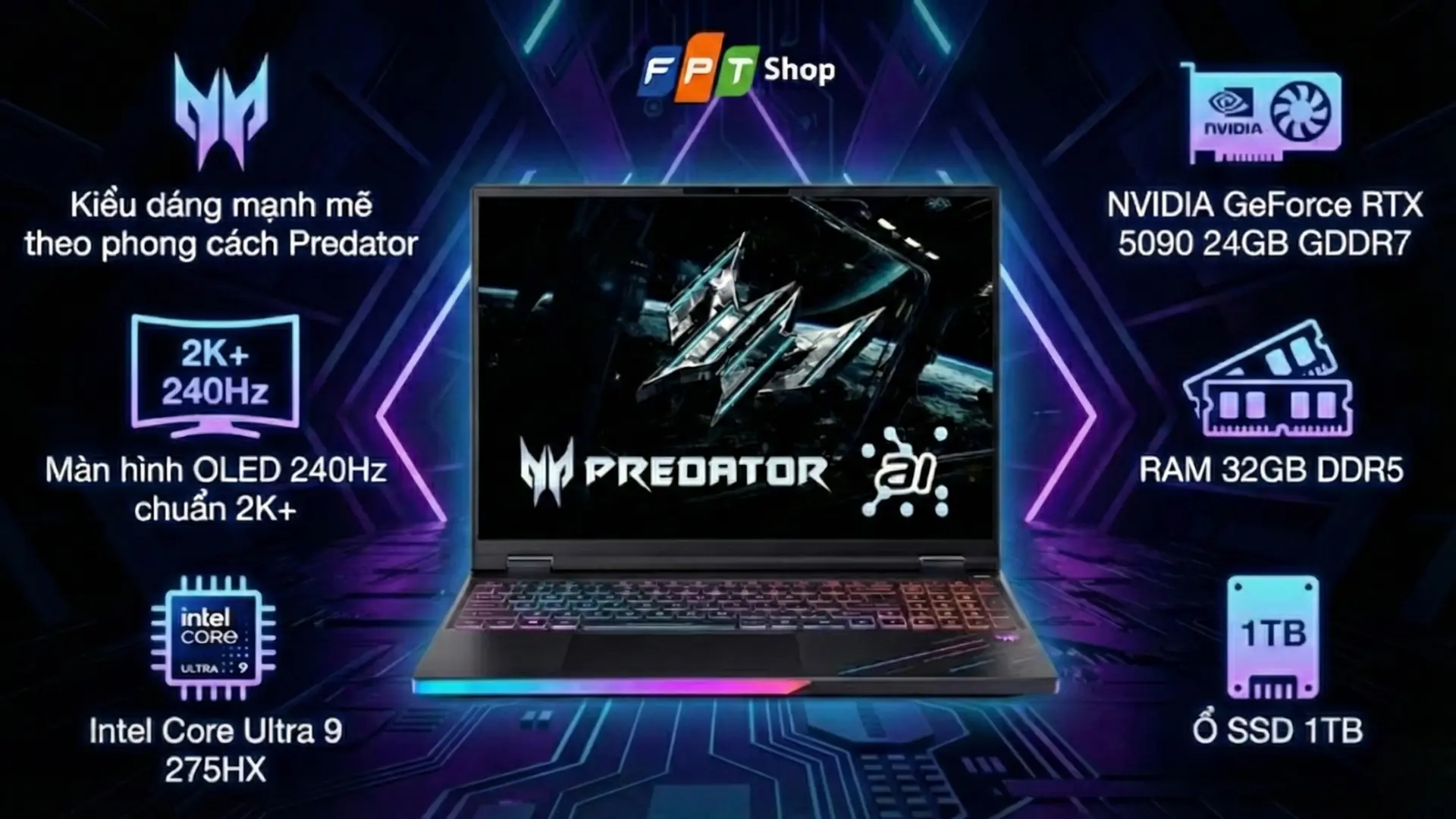 | Card đồ hoạ | NVIDIA GeForce RTX 5090 24GB GDDR7 |