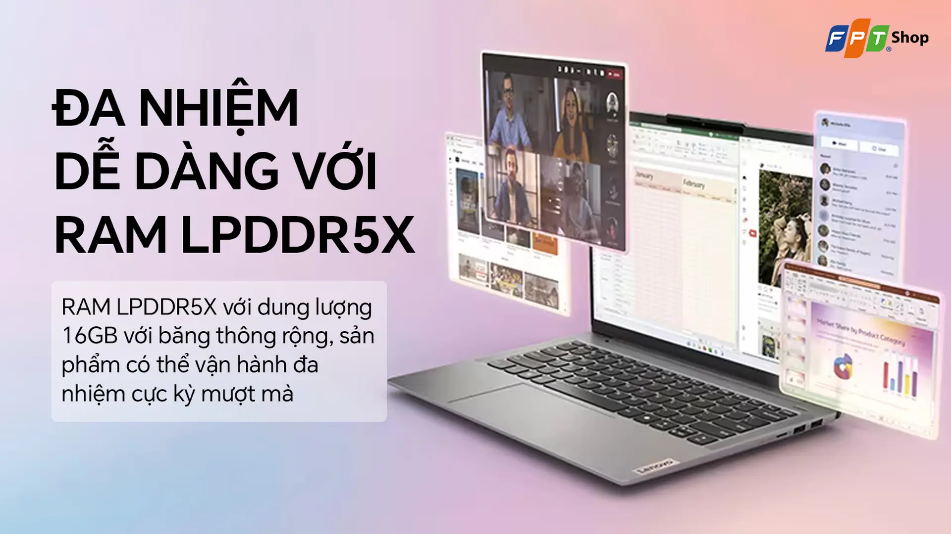 Laptop Lenovo IdeaPad Slim 5 14Q8X9 SD (83HL005AVN) kiểu dáng thanh lịch và trọng lượng 1.48kg nhẹ nhàng, mạnh mẽ với chip Snapdragon X X1-26-100. Giá tốt tại FPT Shop!