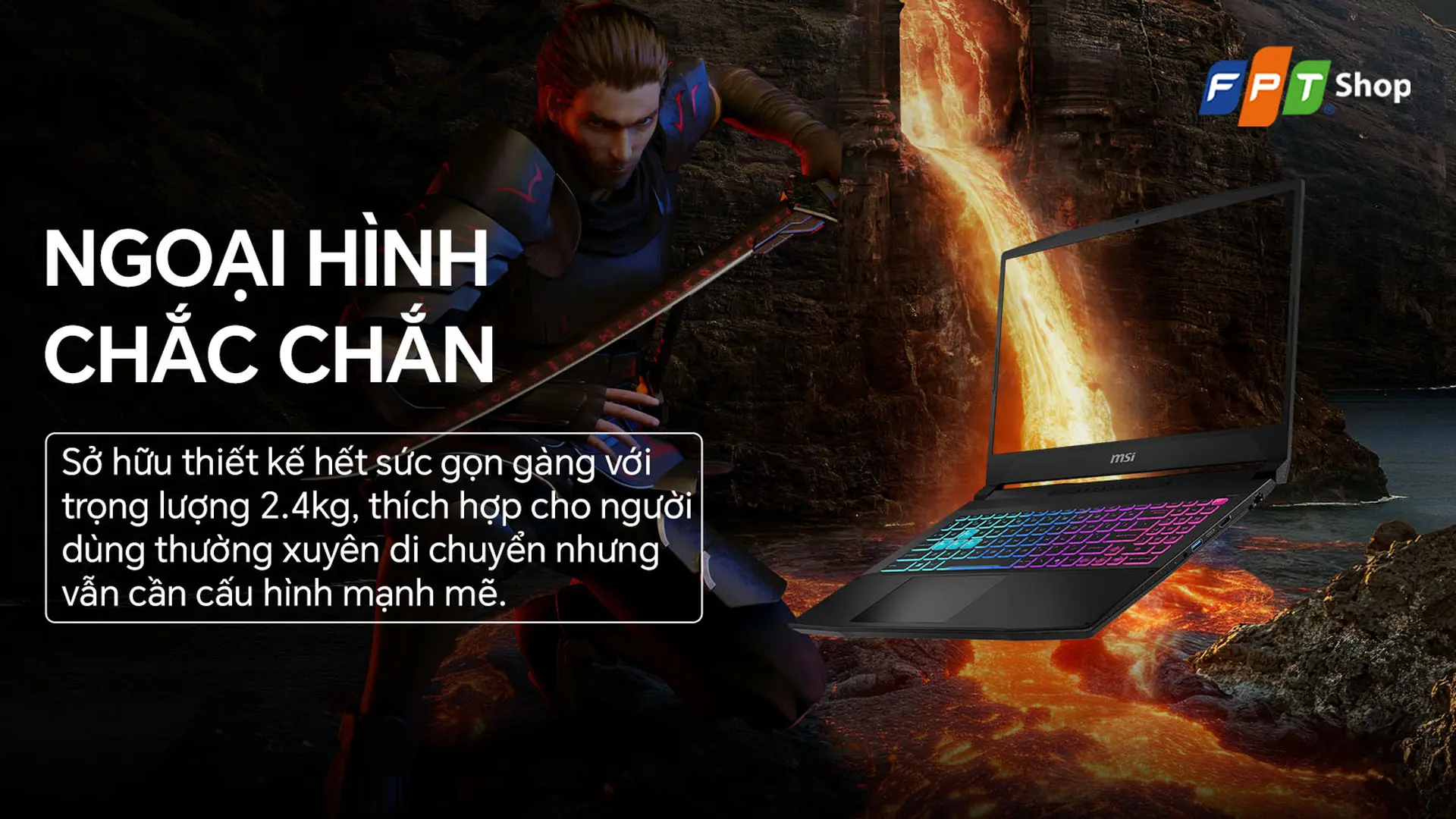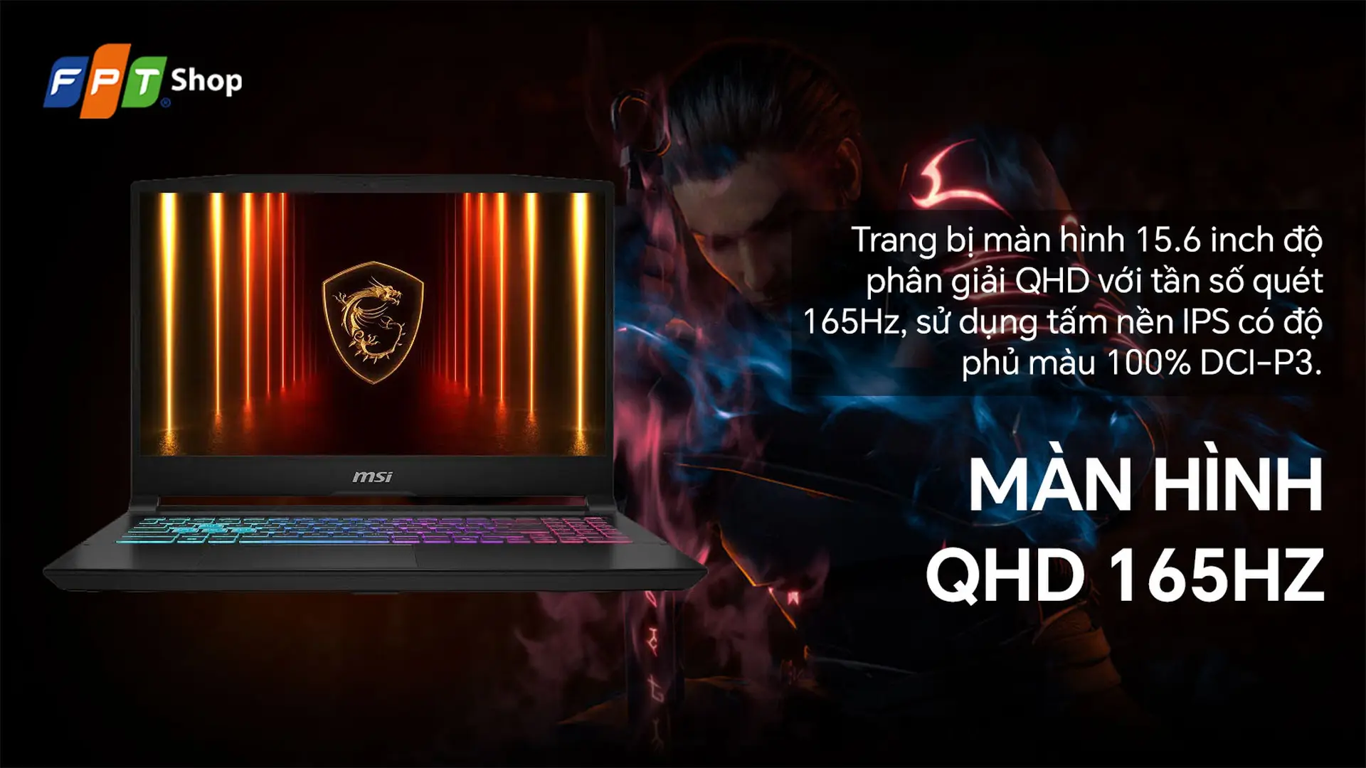Laptop MSI Gaming Katana 15HX B14WEK-027VN hiệu năng mạnh mẽ với chip i7-14650HX, GPU RTX 5050 và RAM 32GB và màn hình QHD 165Hz ấn tượng. Giá tốt tại FPT Shop!