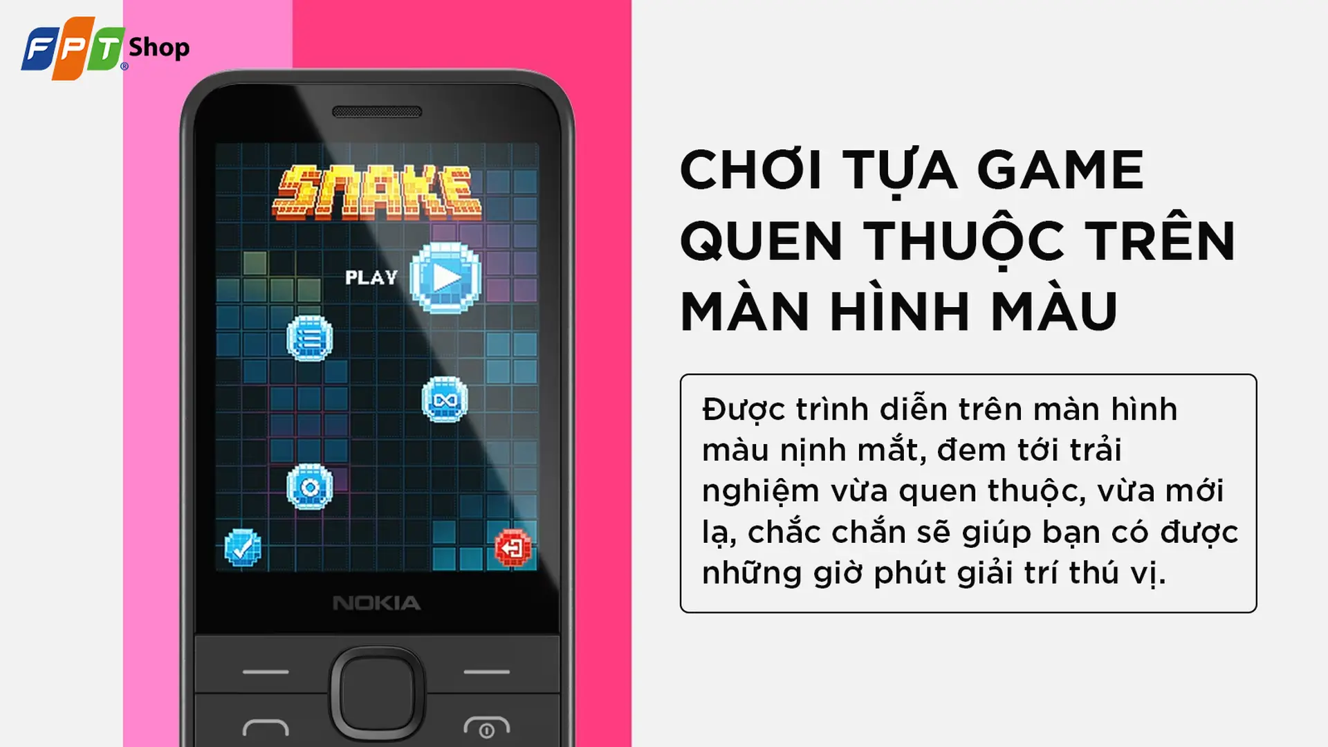 Điện thoại Nokia 220 4G phiên bản 2024 với màn hình màu nịnh mắt, kết nối Bluetooth tiện dụng và khả năng hỗ trợ mạng 4G tốc độ cao. Giá siêu rẻ, bảo hành chính hãng, có thu cũ tại FPTShop.