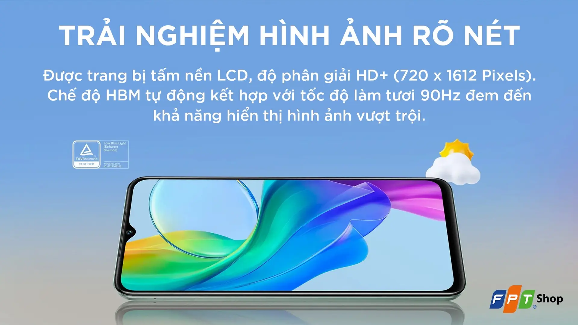 Mua điện thoại Vivo Y03 4GB 64GB chính hãng, giá tốt, có trả góp. Đặc quyền giảm 300.000đ cho sinh viên, bảo hành 12 tháng, hỗ trợ thu cũ đổi mới đến 2 triệu đồng, giao hàng toàn quốc. Mua ngay tại FPT Shop